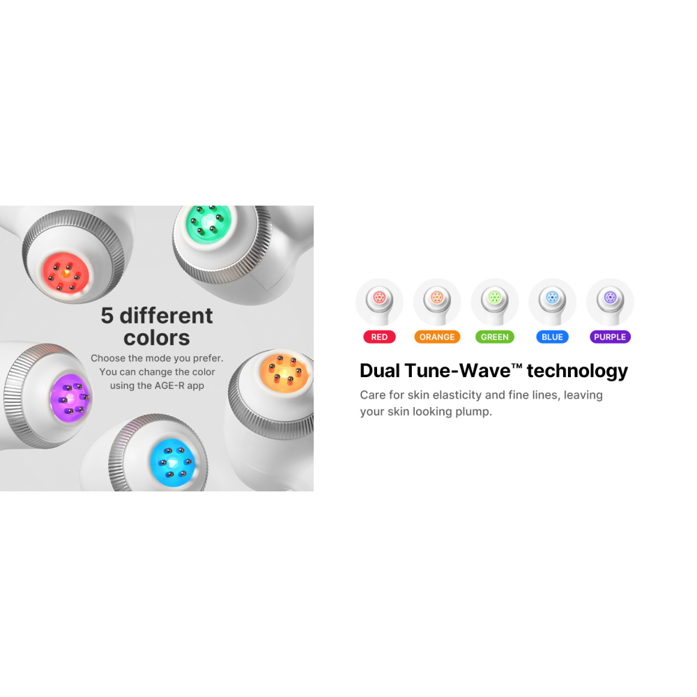Domowe urządzenie 2 w 1 RF + mikroprąd, które zwiększa elastyczność i zmiękcza zmarszczki - nie wymaga żelu, do codziennego użytku, z procedurami prowadzonymi w aplikacji AGE-R.