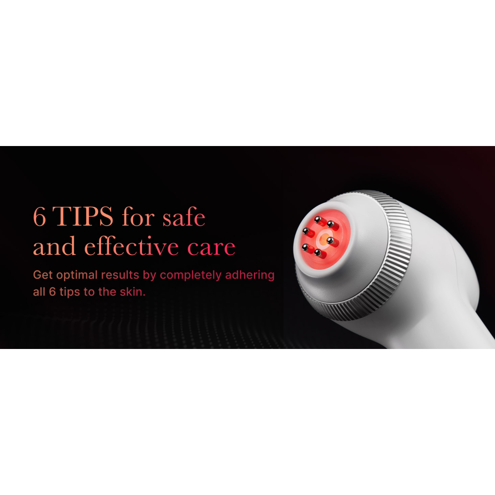 - Działa tylko wtedy, gdy wszystkie sześć końcówek dotyka skóry, zapewniając bezpieczne użytkowanie