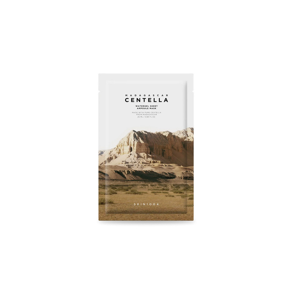 Maseczka w płachcie Skin1004 Madagascar Centella Watergel Sheet Ampoule Mask. Maseczka zawiera w swoim składzie wąkrotkę azjatycką, glicerynę i heparynę, dzięki czemu intensywnie nawilża i odżywia skórę, a przy tym jest idealna dla normalnej, żywej i gładkiej skóry.