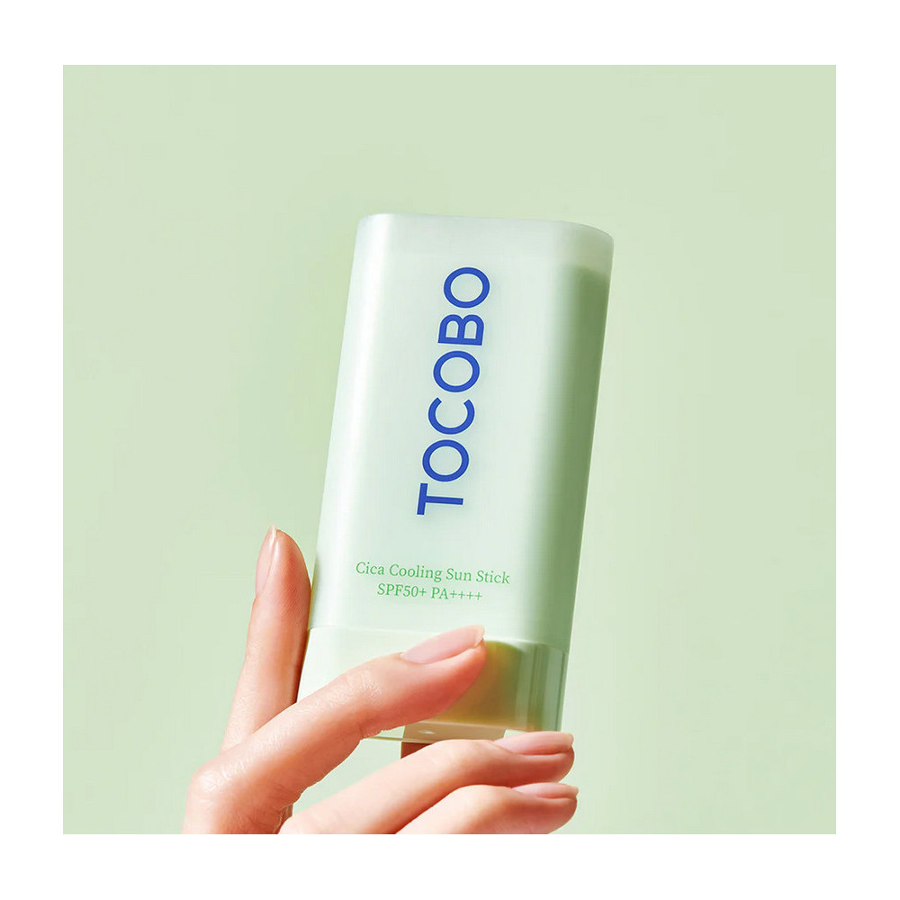 Chladivá tyčinka na opalování Tocobo Cica Cooling Sun Stick, která je certifikovaná jako veganská a neobsahuje krutost, vám poskytne účinnou a zklidňující ochranu před sluncem, která udrží vaši pokožku chladnou a hydratovanou po celý den.