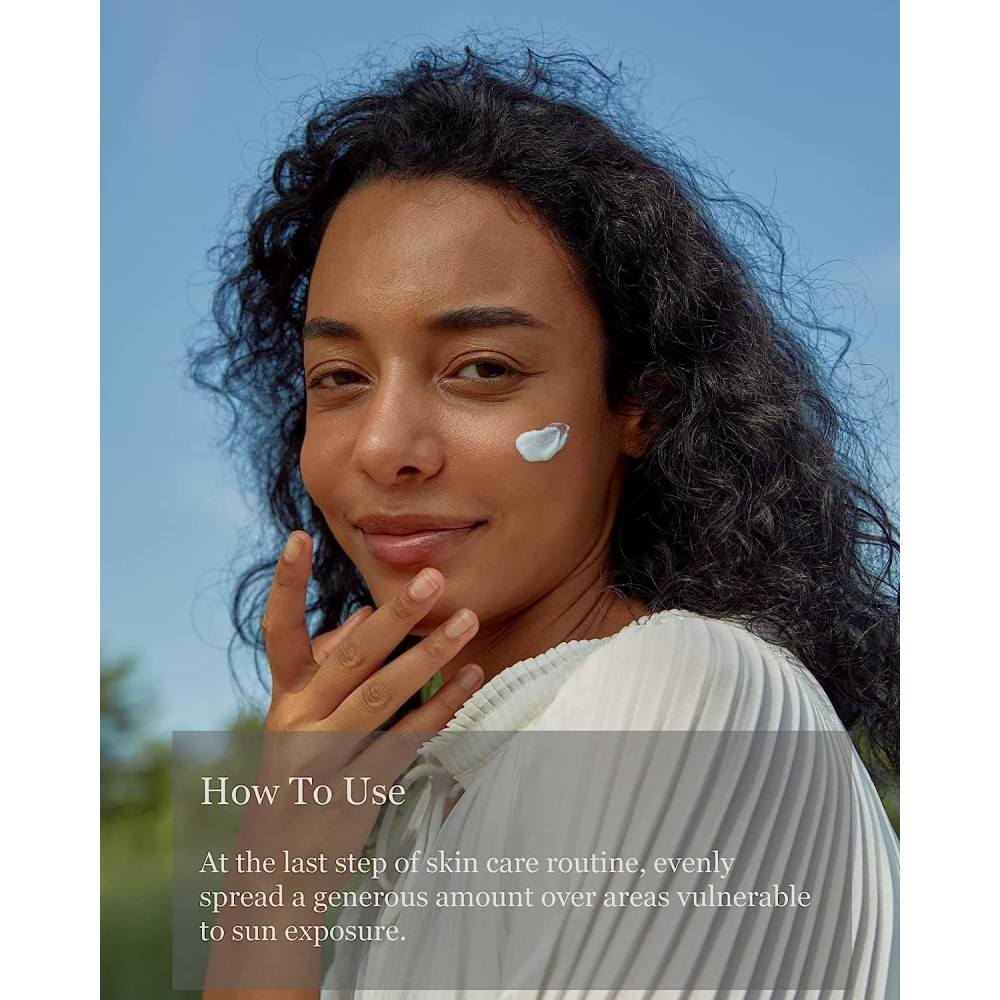 Na ostatnim etapie rutynowej pielęgnacji skóry rozprowadź równomiernie dużą ilość kremu na obszarach narażonych na działanie promieni słonecznych. Nakładać ponownie w razie potrzeby, aby zapewnić ciągłą ochronę.