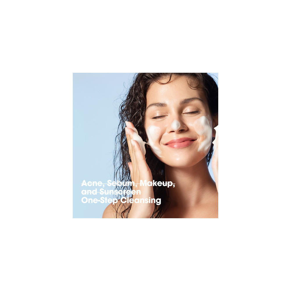 Pianka oczyszczająca do codziennej pielęgnacji cery trądzikowej zawierająca kwasy AHA, BHA i PHA, które usuwają martwe komórki naskórka, odblokowują pory i pozostawiają skórę czystą, a jednocześnie komfortową. Wzbogacona o Centella Asiatica i drzewo herbaciane, które łagodzą zaczerwienienia. Niekomedogenny i testowany klinicznie.