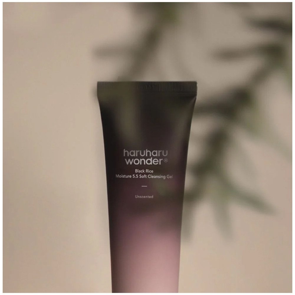 Haruharu Wonder Black Rice Moisture 5.5 Soft Cleansing Gel - łagodny, bezzapachowy żel oczyszczający o zrównoważonym pH z 95% naturalnych składników, który delikatnie oczyszcza, łagodzi i chroni barierę ochronną skóry.